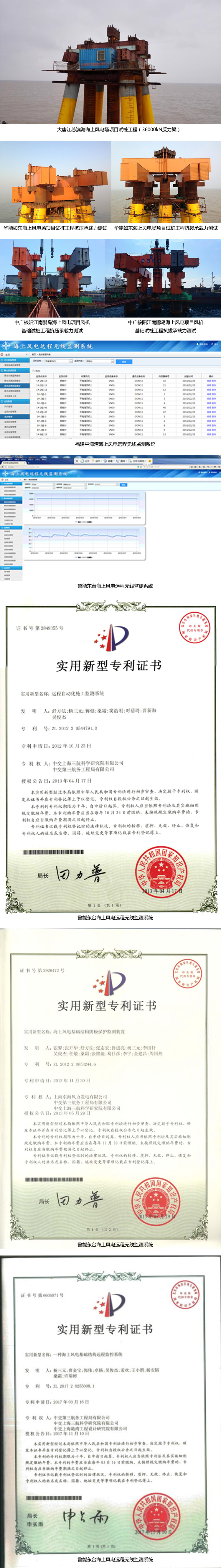 我公司开发的远程自动监测系统拥有自主知识产权,在总结多年监测项目经验的基础上,整合相关监测、测控、计算机等专业技术力量自主开发一套基于物联网技术和云平台技术的监控系统。各级授权用户可以通过网络访问海上风电基础结构安全监控系统平台,实时远程向现场监测单元发生远程测控指令,设置现场测控单元的监控参数(如采样频率、通讯间隔等),也可以远程监控现场测控单元的工作状态,实现了无人值守的条件下全面、准确、实时地获取监测数据,克服了传统的人工监测和目前常规的自动采集模块的诸多弊端,能客观地反映风机在风、暴、潮等恶劣天气环境下的状况。远程自动监测系统已在东海风电场风机基础防腐监测、莆田平海湾50MW海上风电项目、中广核如东150MW海上风电场示范项目、港珠澳大桥主体工程岛隧工程东人工岛施工监测和连云港港徐圩港区直立式结构东防波堤工程施工项目等重点项目中得到应用,系统稳定可靠。并获得了“远程自动化施工监测系统”(专利号:ZL201220544791.0)实用新型专利和“远程自动化施工监测平台软件系统计算机软件著作权”(登记号:2013SR136823)。